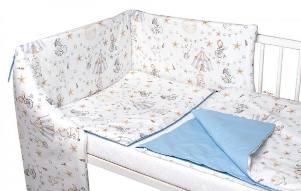 Recenze 3-dílná sada Mantinel s povlečením Baby Nellys Cirkus, modrá/bílá, 120x90