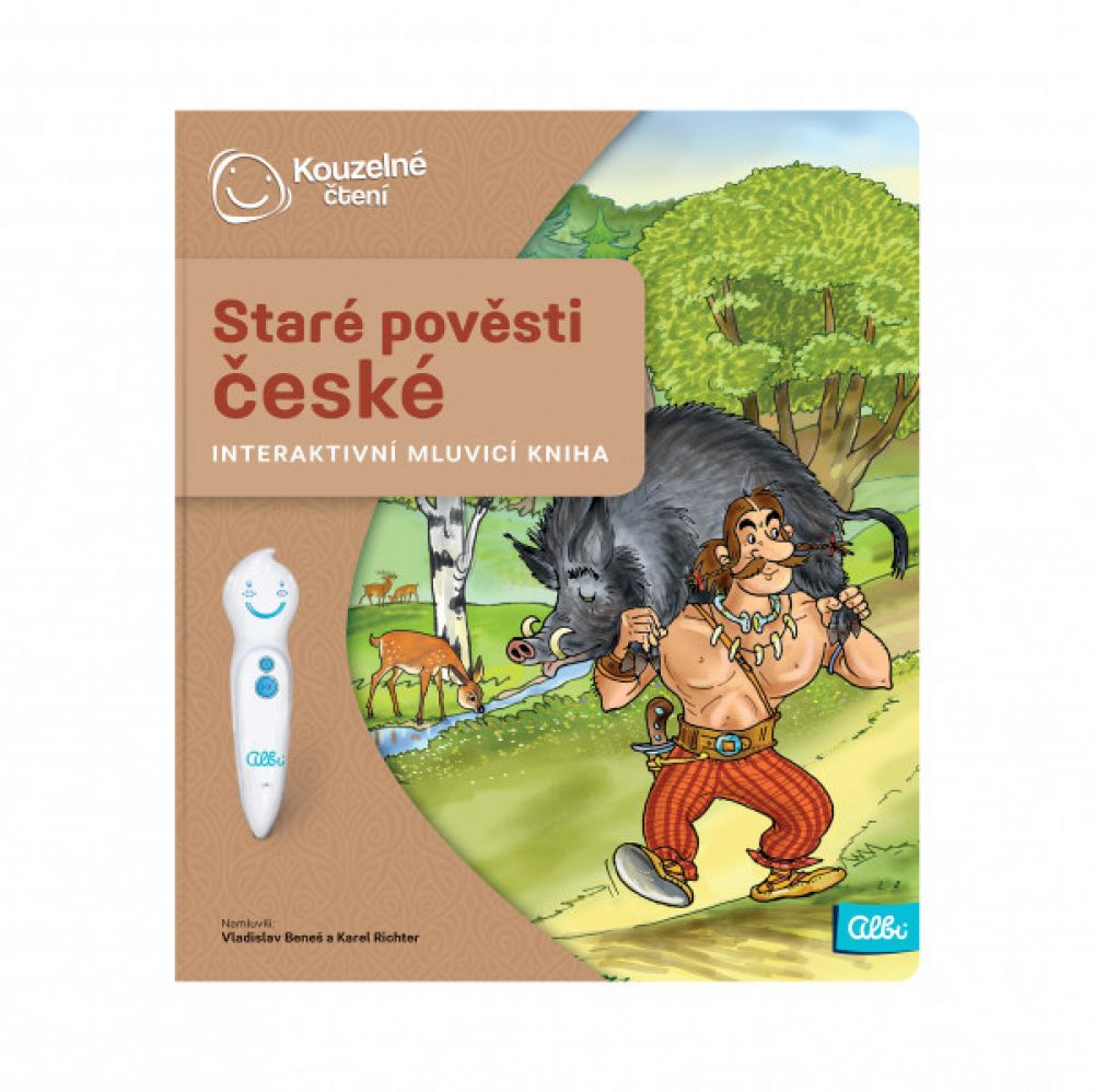Kniha Staré pověsti české z edice Kouzelné čtení provede děti od 8 let pověstmi pohanských Čechů od Aloise Jiráska. Kniha Staré pověsti české z edice Kouzelné čtení provede děti od 8 let pověstmi pohanských Čechů od Aloise Jiráska.Každá dvoustrana knihy je věnována jedné pověsti. Těšit se můžete na tyto pověsti - O Čechovi, O Krokovi a jeho dcerách, O Bivoji, O Libuši, O Přemyslovi, Libušina proroctví, O Křesomyslu a Horymírovi a Lucká válka.V naučné knize na děti čeká zkrácená verze jednotlivých pověstí, seznámení s postavami, poutavé dialogy a zvuky. Elektronická Albi tužka není součástí balení. Prodává se zvlášť.V knize Staré pověsti české nechybí zajímavé kvízy. Tentokrát ve 3 obtížnostech - od jednoduchého na poznávání předmětů, po složitější, kdy děti dostávají na výběr ze 3 odpovědí a určují, která odpověď je správná.Krásné ilustrace Antonína Šplíchala rozvinou fantazii, jak vše mohlo vypadat a výstižné dialogy nakreslených postav předají dětem nenásilnou formou podstatu jednotlivých pověstí.Kniha Staré pověsti české obsahuje přes 2000 zvuků a textů. Namluvili ji Vladislav Beneš a Karel Richter.Elektronická Albi tužka se prodává samostatně a není tedy součástí žádné knihy.