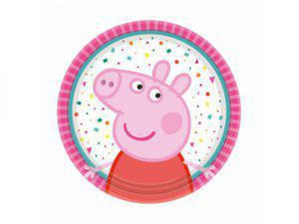 Sada osmi papírových talířků o průměru 18cm s motivem Prasátko Pepina. Sada osmi papírových talířků o průměru 18cm s motivem Prasátko Pepina.Vysoce kvalitní talířky vhodné pro dozdobení Vašeho party stolu.