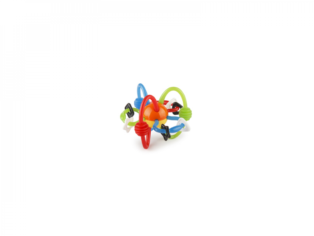 Bezpečné chrastítko a kousátko dítě zabaví i uleví jeho citlivým dásním při prořezávání zoubků. Různorodé textury podněcují dítě ke zkoumání rukama i ústy. Tvar hračky umožňuje snadné uchopení dětskými ručičkami. Vhodné od narození.