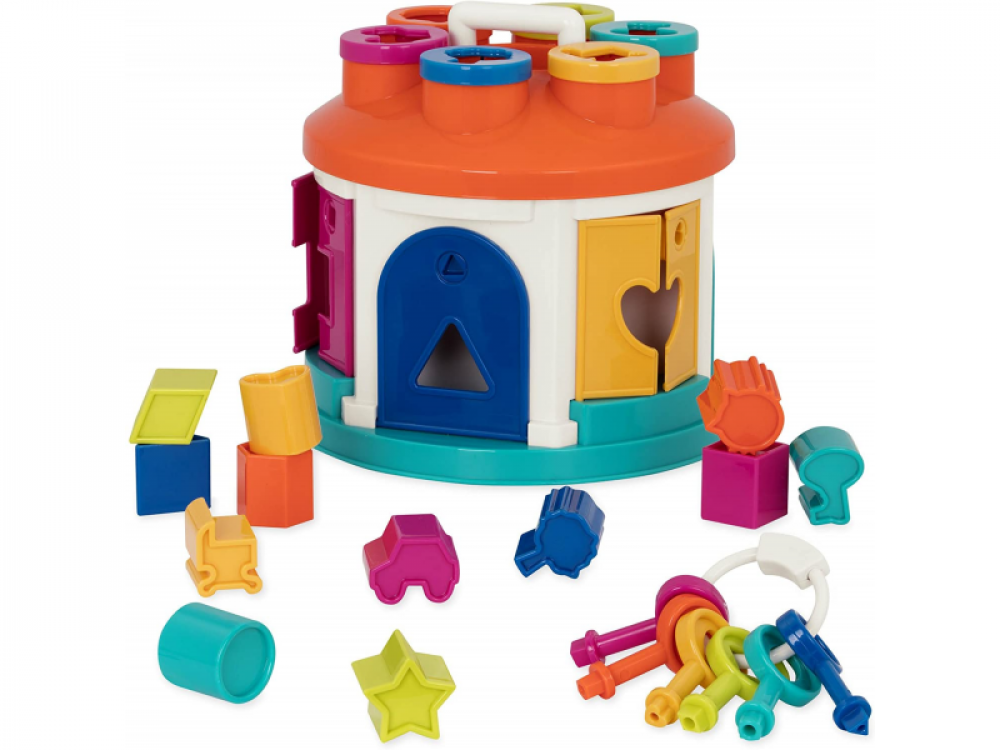 Sada obsahuje dům, kroužek s šesti klíči, 12 různých tvarů