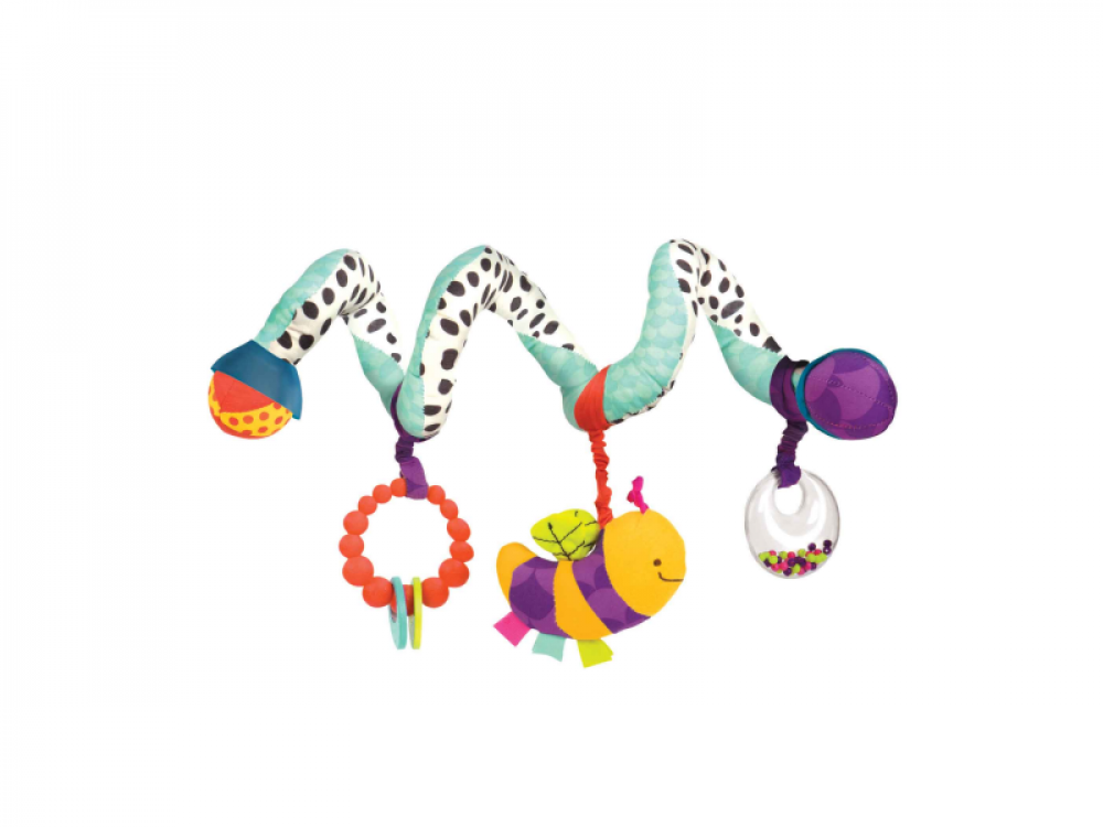 Spirálu snadno připevníte k madlu kočárku, autosedačky či na postýlku. Zavěšené hračky upoutají pozornost dítěte a pomáhají rozvoji jeho smyslů.