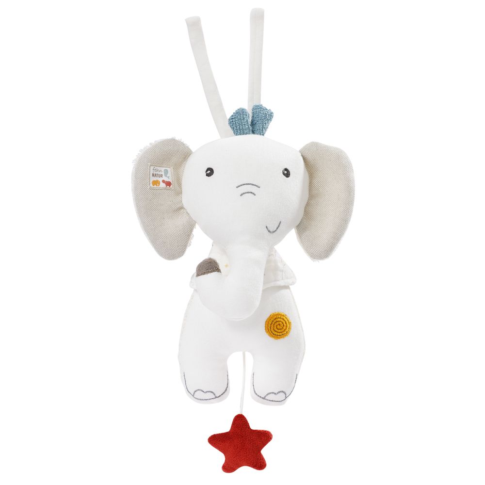 • Plyšová hračka a pomůcka na spaní je vyrobena ze 100% certifikované organické bavlny a naplněna 100% PLA vlákny z obnovitelných surovin. • Roztomilý slon láká k mazlení a k přitulení.• Po zatažení hudební zvonkohry se rozezní známá ukolébavka. Její jemná melodie hraje v příjemné hlasitosti a vaše děťátko snadno přenese do říše snů.• Mazlící slon není jen ideální plyšová hračka, ale i perfektní společník, kdekoli budete. Můžete ho snadno připevnit na postýlku, dětský kočárek či autosedačku. Velikost: 20 cm Věk: 0+