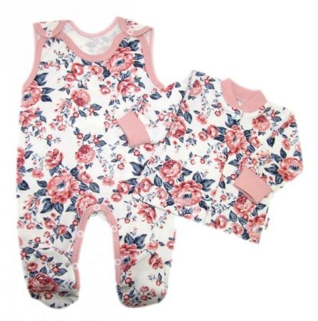 Baby Nellys 2-dílná sada, bavlněné dupačky s košilkou Anglická Růže, vel. 62, 62 (2-3m)
