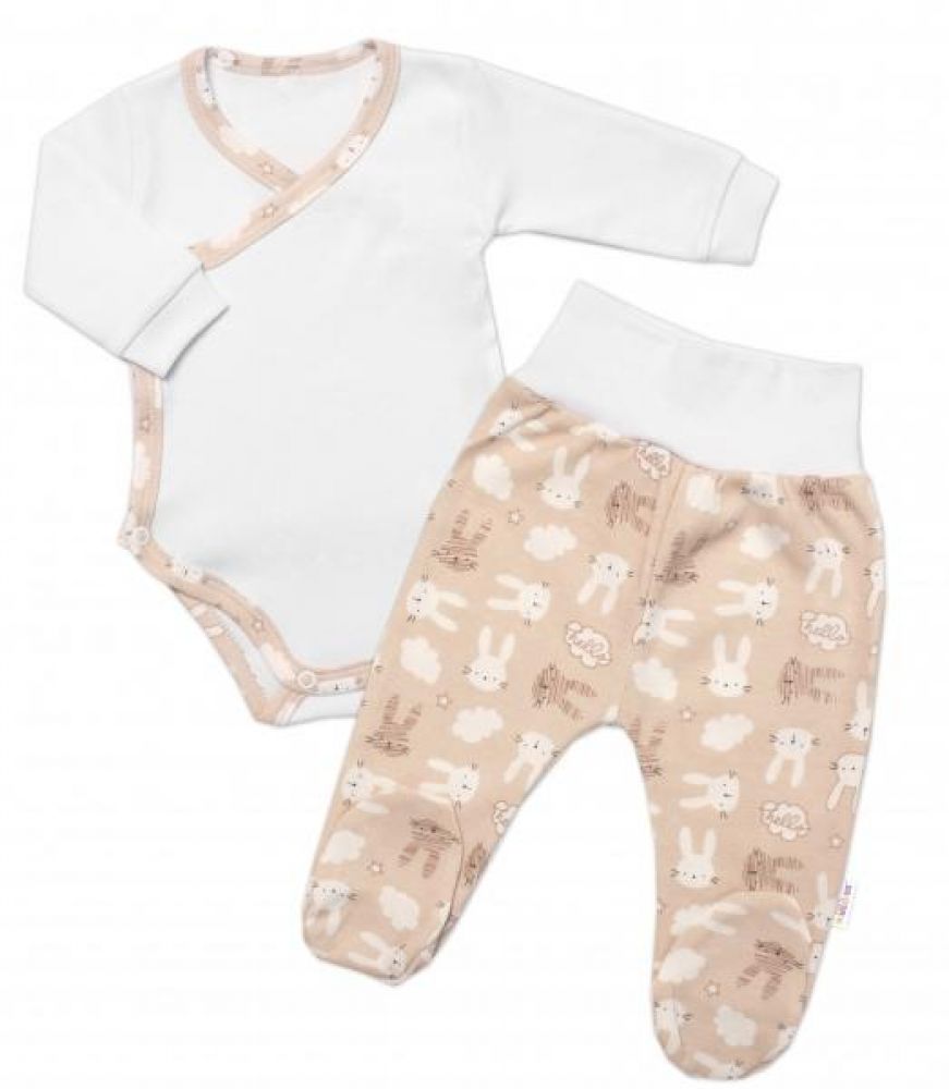 Baby Nellys 2-dílná sada, body dl.rukáv a polodupačky New Bunny, béžová, 68 (3-6m)
