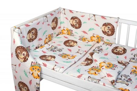 Baby Nellys 3-dílná sada, mantinel s povlečením Ježek a liška - bílá/žlutá, 120x90
