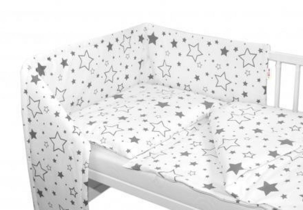 Recenze Baby Nellys 3-dílná sada mantinel s povlečením Šedé hvězdy a hvězdičky - bílý 120 x 90 cm