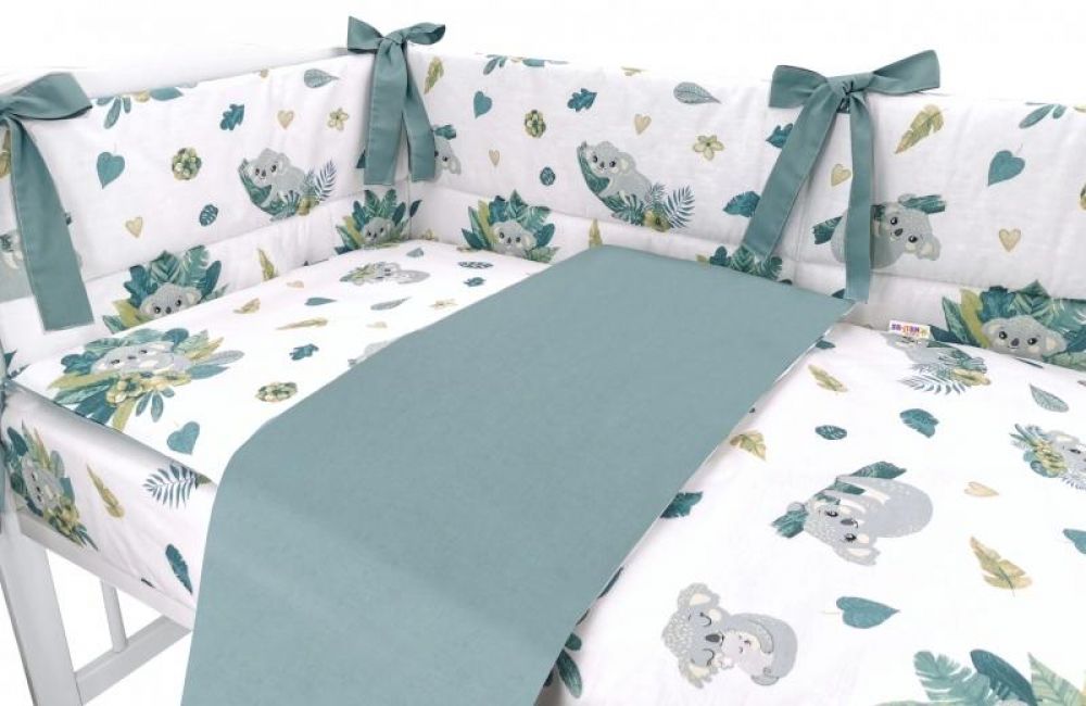 BABY NELLYS 3-dílná sada Mantinel s povlečením, Tropical Koala, zelená, bílá, 135x100 cm, 135x100