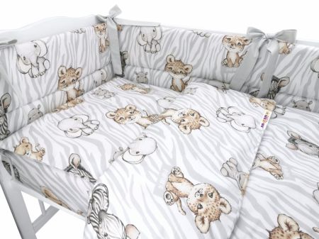 Recenze BABY NELLYS 3-dílná sada Mantinel s povlečením, ZOO Natural, hnědá, šedá Velikost: 135x100