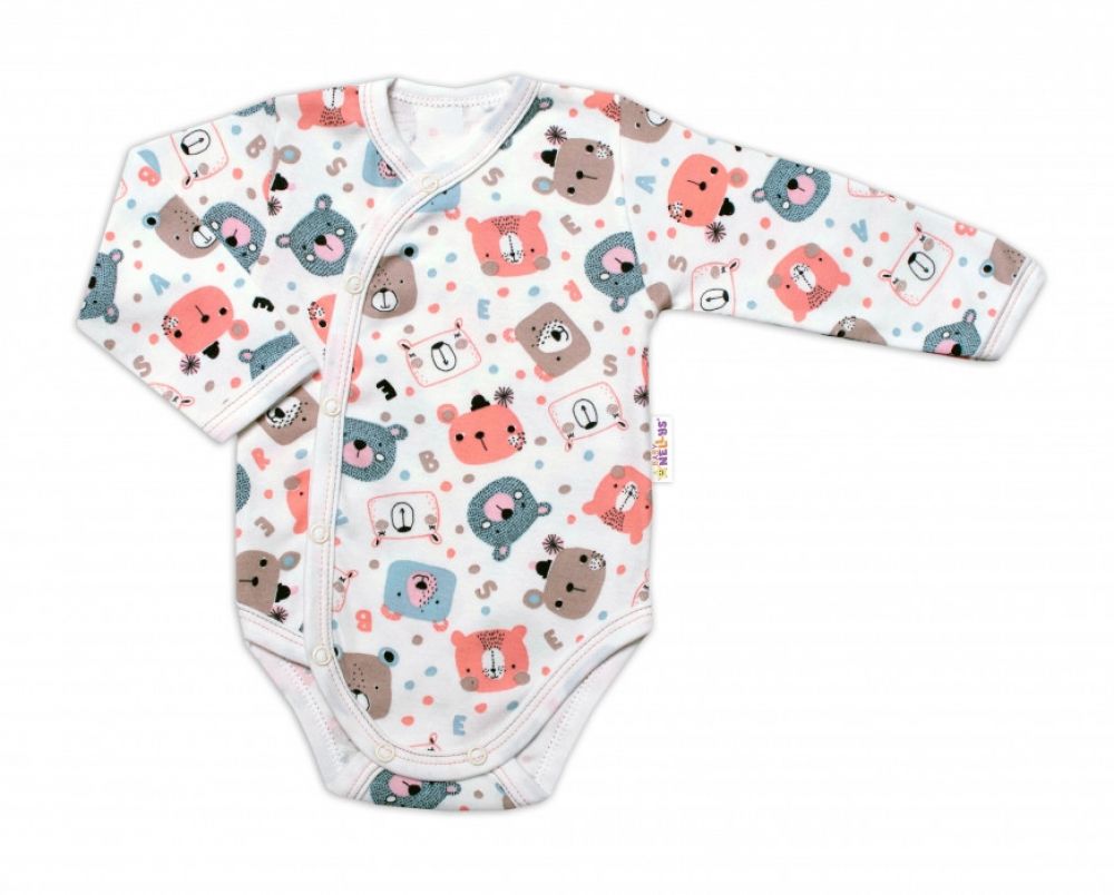 Recenze Baby Nellys Bavlněné body s dl. rukávem, zapínání bokem, New Teddy - Růžové Vel. 56