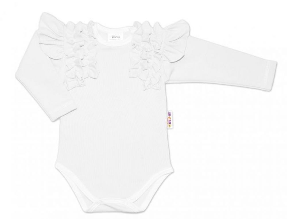 BABY NELLYS Dětské Body dlouhý rukáv s volánky, bílé, vel. 92, 92 (18-24m)