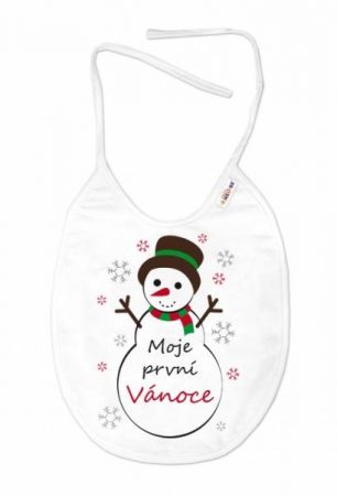 Baby Nellys Nepromokavý bryndáček Moje první Vánoce, Sněhulák, 24 x 27 cm - bílý