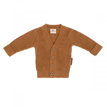 Pletený dětský svetřík pro miminko v karamelové barvě přináší vašemu dítěti hodně pohodlí při nošení na cestách. Krásný zimní svetřík je vybaven knoflíky na přední straně, které usnadňují oblékání a svlékání. Díky jemnému a flexibilnímu materiálu z organické bavlny je jemný a stálobarevný.