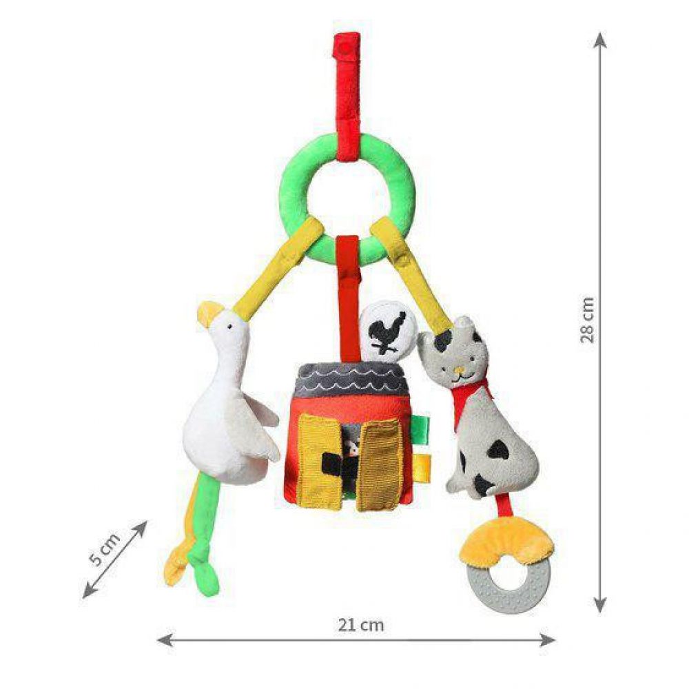 Díky vzdělávací hračce NA FARMĚ objeví vaše dítě rozmanitý svět barev, zvuků a tvarů. Díky vzdělávací hračce NA FARMĚ objeví vaše dítě rozmanitý svět barev, zvuků a tvarů. Hračku snadno připevníte na autosedačku nebo kočárek a zpříjemníte tak vašemu batoleti každou cestu. Smyslem kolekce je podnítit dětskou zvídavost a povzbudit ho k aktivitě a učení se novým dovednostem prostřednictvím hry. Hračka podporuje manuální rozvoj dítěte tím, že ho povzbuzuje k uchopení prvků. Dítě může snadno přenášet hračky z rukojeti na rukojeť, procvičuje úchop ručičky.Zajímavé uzly vybízejí k tahání za rukojeti a dotýkání se hračky. Měkké silikonové kousátko, které je součástí hračky, zklidňuje podrážděné dásně při prořezávání zoubků Měkké silikonové kousátko dodávané s hračkou zklidňuje podrážděné dásně při prořezávání zoubků Šustivé prvky skryté v křídlech husy dítě zaujmou a přitáhnou jeho pozornost. dům lze otevřít a zavřít. Takový efekt překvapení zaměřuje pozornost dítěte a učí je kreativně myslet. Zrcadlo umístěné v domě vám umožní zkontrolovat svůj vlastní odraz. Barevné, vyčnívající štítky stimulují hmat dítěte. Technická data Materiál: 100% polyester Hmotnost: 0,09 kg Určeno pro děti od 0 měsíců (0m +) Rozměry velikost balení 21 x 28 x 5.