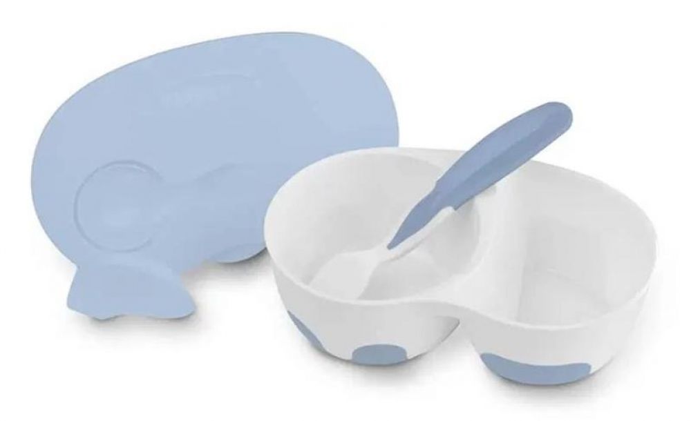 Recenze BabyOno Uzavíratelná dvoukomorová miska s lžičkou - šedá/bílá