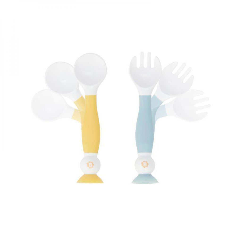 Ohebná lžička s vidličkou Badabulle. Ohebná lžička s vidličkou Badabulle.Vlastnosti:- ideální krmící pomůcka pro děti, které začínají samostatně jíst- jsou ohebné, lehce se přizpůsobí potřebám dítěte- ve spodní části mají přísavku- 7 cm dlouhá rukojeť- díky zaobleným špičkám vidličky jsou šetrné k jemným dětským dásním- vyrobeno z odolného zdravotně nezávadného materiálu, neobsahuje ftaláty ani BPA- vhodné do myčky na nádobí- vhodné pro děti od 6 měsíců.