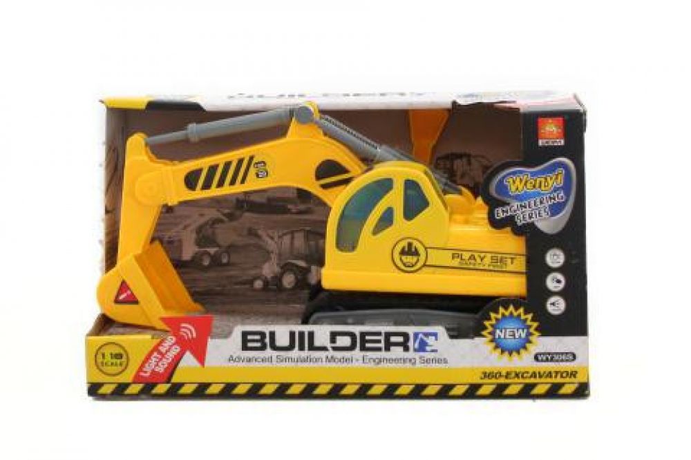 Bagr na baterie o rozměru cca 24 x 12 cm. Plastový bagr na baterie o rozměru cca 24 x 12 cm. Baterie nejsou součástí. Bagr svítí a vydává zvuky.Doporučený věk: 3+