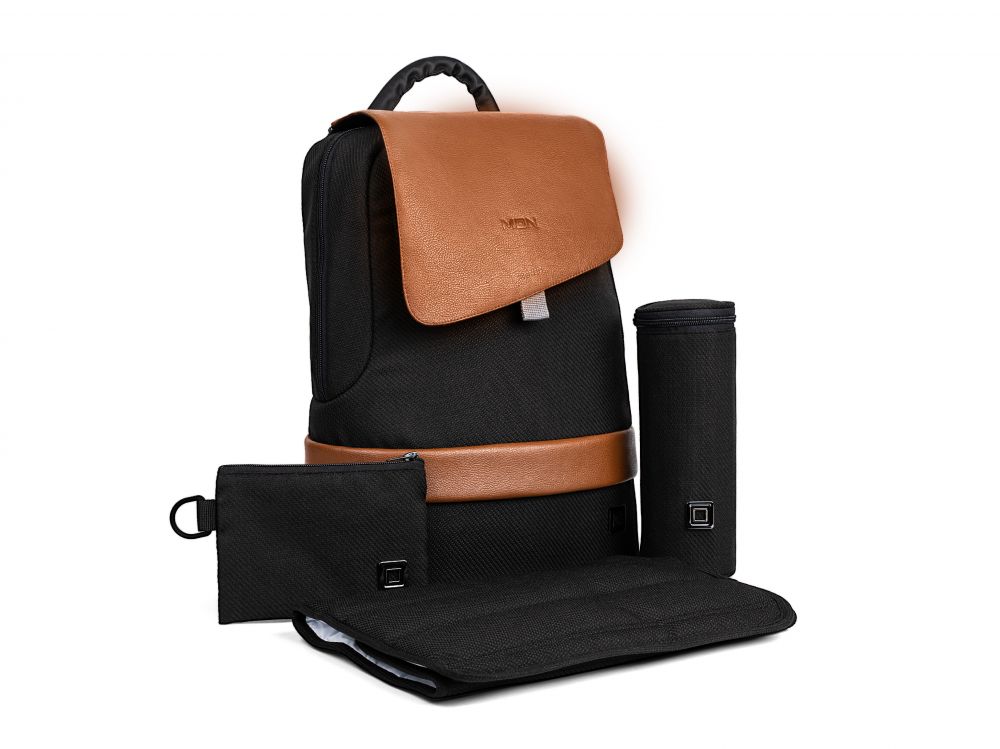 Batoh na kočárek. Obsahuje přebalovací podložku, termoobal s uchycením na kočárek, kapsičku na mobilní telefon a poutka na zavěšení na rukojeť kočárku.