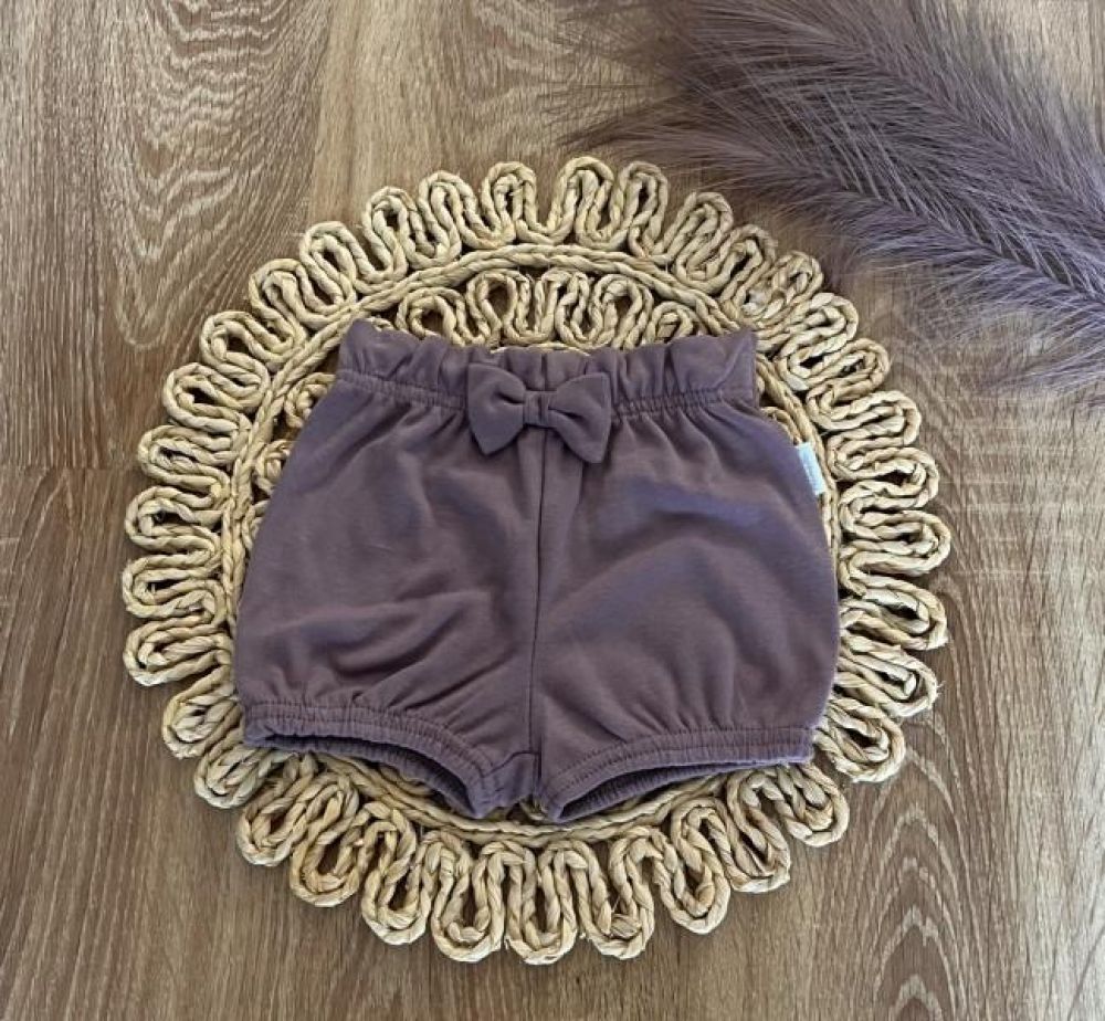 Bavlněné kraťásky s mašličkou Mamatti, Puntík, švestkové, vel. 86, 86 (12-18m)
