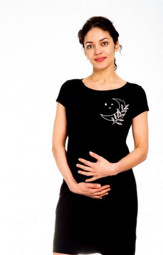 Be MaaMaa Těhotenská, kojící noční košile MOON - černá, vel. L/XL, L/XL