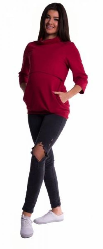 Be MaaMaa Těhotenské a kojící teplákové triko - bordo, vel. M, M (38)