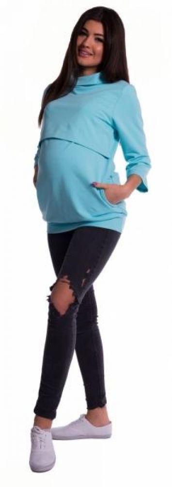 Be MaaMaa Těhotenské a kojící teplákové triko - mátové - vel. S, S (36)