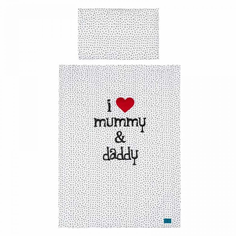 Bavlněná 3-dílná souprava do postýlky Belisima I love a je zdobena zajímavým vzorem a nápisem i love mummy and daddy. Obsahuje povlečení na polštářek cca 40x60 cm, povlečení na peřinku cca 100x135 cm a mantinel cca 180 cm. Materiál 100% bavlna.Tyto výrobky jsou bezpečné, protože:- přírodní bavlna nezpůsobuje odřeniny a podráždění, jelikož neobsahuje formaldehydy a další prvky, které kojencům škodí- neztrácí barvu a nezabarvuje oblečení- nabízené vzory jsou příjemné na pohled a mají uklidňující barvy- zipy používané u povlečení jsou tzv. "bezpečné zipy" bez volně visící koncovky, kterou by mohlo dítě utrhnout a spolknout- nejsou použity žádné knoflíky ani žádné další plastové nebo ocelové části, které mohou být pro Vaše dítě nebezpečné- materiál, který je používán pro výplně polštářů a přikrývek, je 100% protialergický, což znamená, že se v jeho vláknech nešíří žádné mikroorganismy ani plíseň