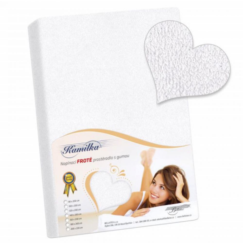 Jemné froté prostěradlo Kamilka s gumou po okraji pro snadné uchycení prostěradla na lůžko. Velikost prostěradla je 90 x 200 cm ( horní rozměr ) Výška rohu prostěradla je 25 cm vhodné pro výšku matrace do 20 cm.