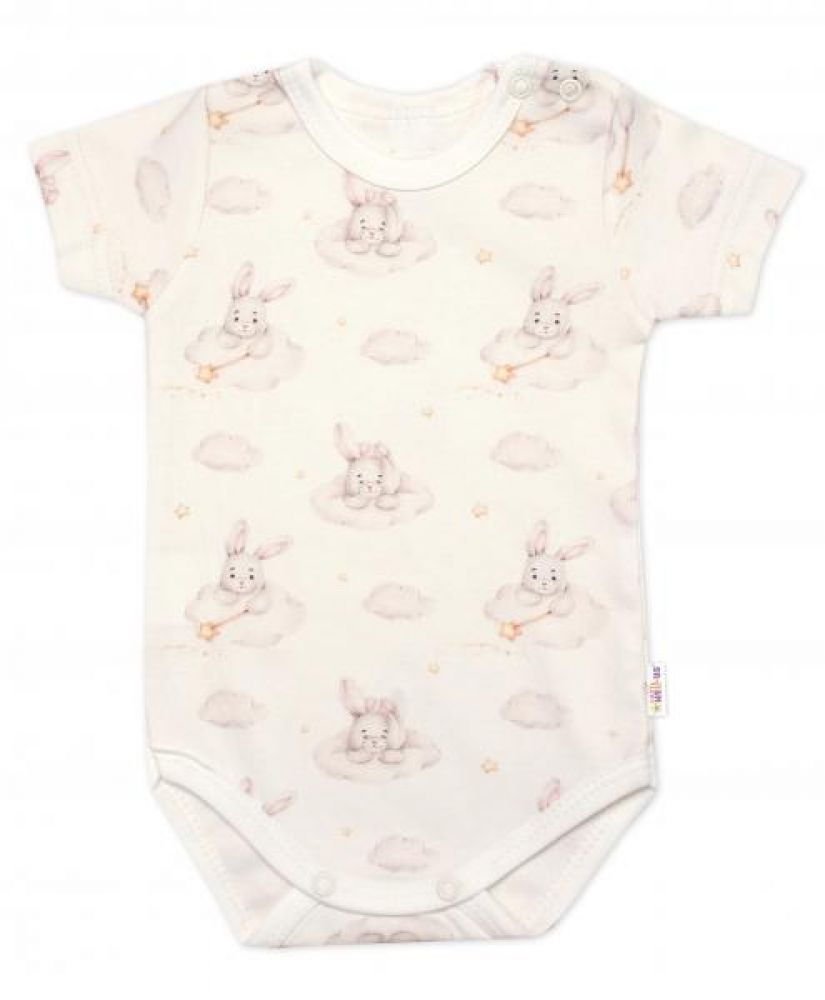 Body kr. rukáv, bavlna, zapínání u krku, Baby Nellys Králičci, krémové, vel. 86, 86 (12-18m)