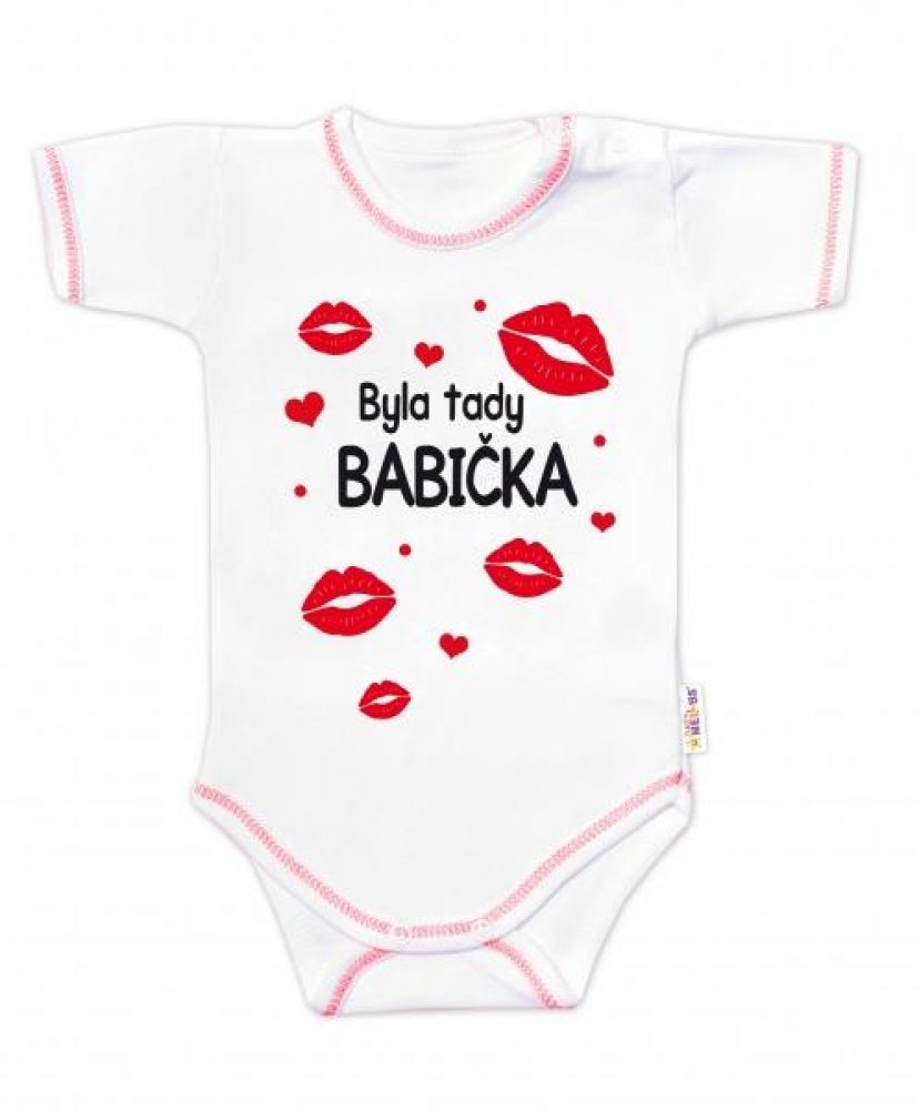 Body krátký rukáv s vtipným textem Baby Nellys, Byla tady babička, vel. 74, 74 (6-9m)
