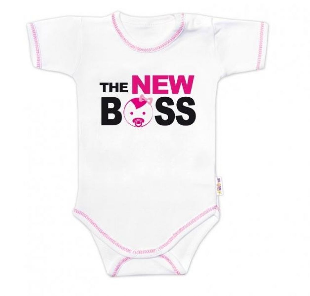 Body krátký rukáv s vtipným textem Baby Nellys, The New Boss, holka, 56 (1-2m)