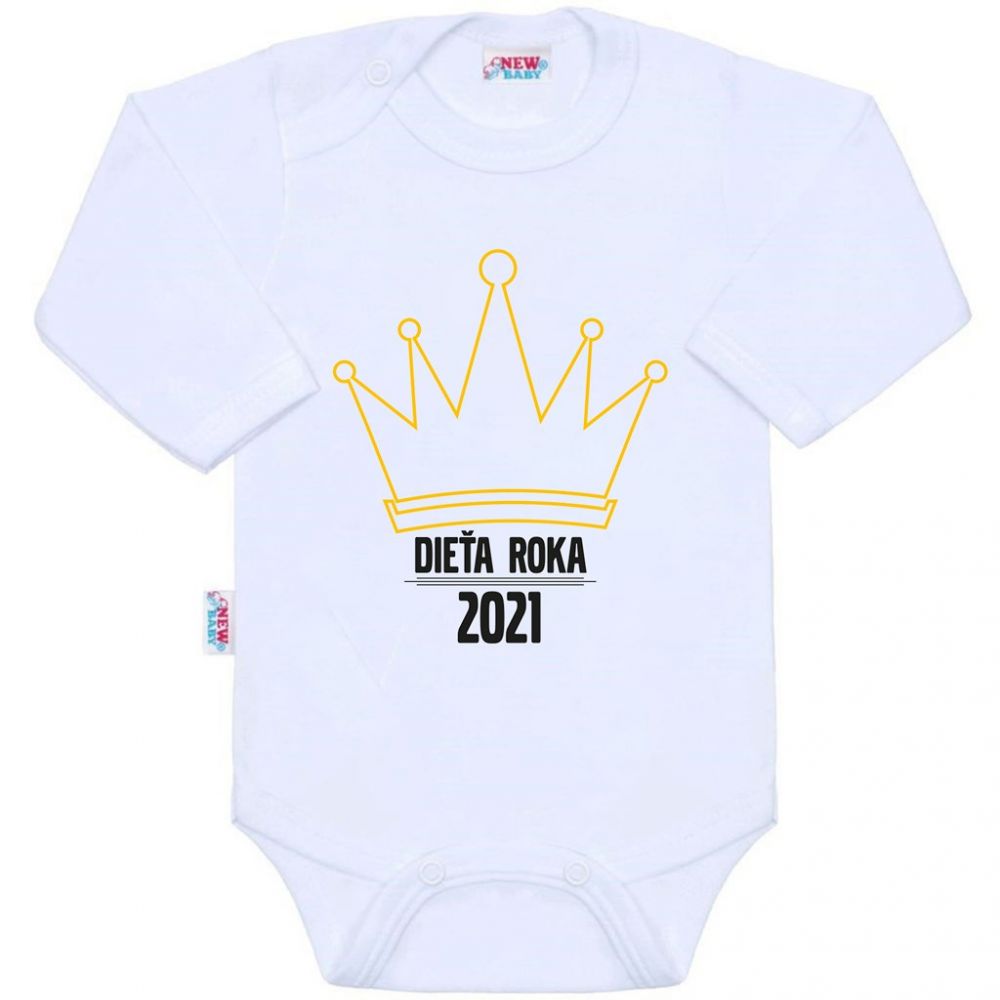 Originální bavlněné kojenecké body s dlouhým rukávem New Baby, s vtipným nápisem DIEŤA ROKA 2021. Barvy použité k potisku jsou certifikované a vhodné pro miminka. Je vyrobeno z příjemného a kvalitního materiálu, ve kterém se bude Vaše miminko cítit příjemně. Body má zapínáni na cvočky na ramínku a mezi nožičkami, což usnadňuje oblékání a přebalování. Dopřejte Vašemu miminku vyniknout v originálním body. Složení: 100% bavlna. Rozměry: obvod kolem hrudníku cca 36 cm, délka rukávu cca 18 cm, celková délka cca 32 cm.Produkt české značky