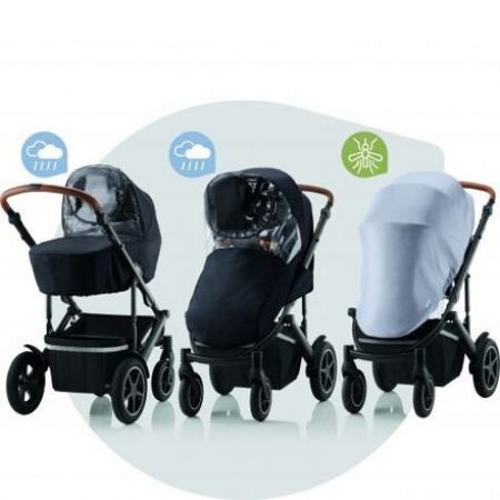 Praktickým doplňkem kočárku Britax Smile, je rozhodně sada obsahující pláštěnky a moskytiéru, pro ochranu děťátka před deštěm i hmyzem.