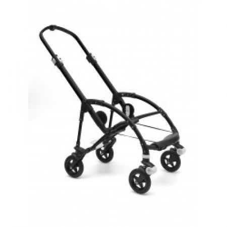 Podvozek kočárku Bugaboo Bee⁵ včetně zadních kol. Přední kola a krytky kol nejsou součástí balení, stejně jako koženkové rukojeti. Tyto položky lze objednat samostatně.