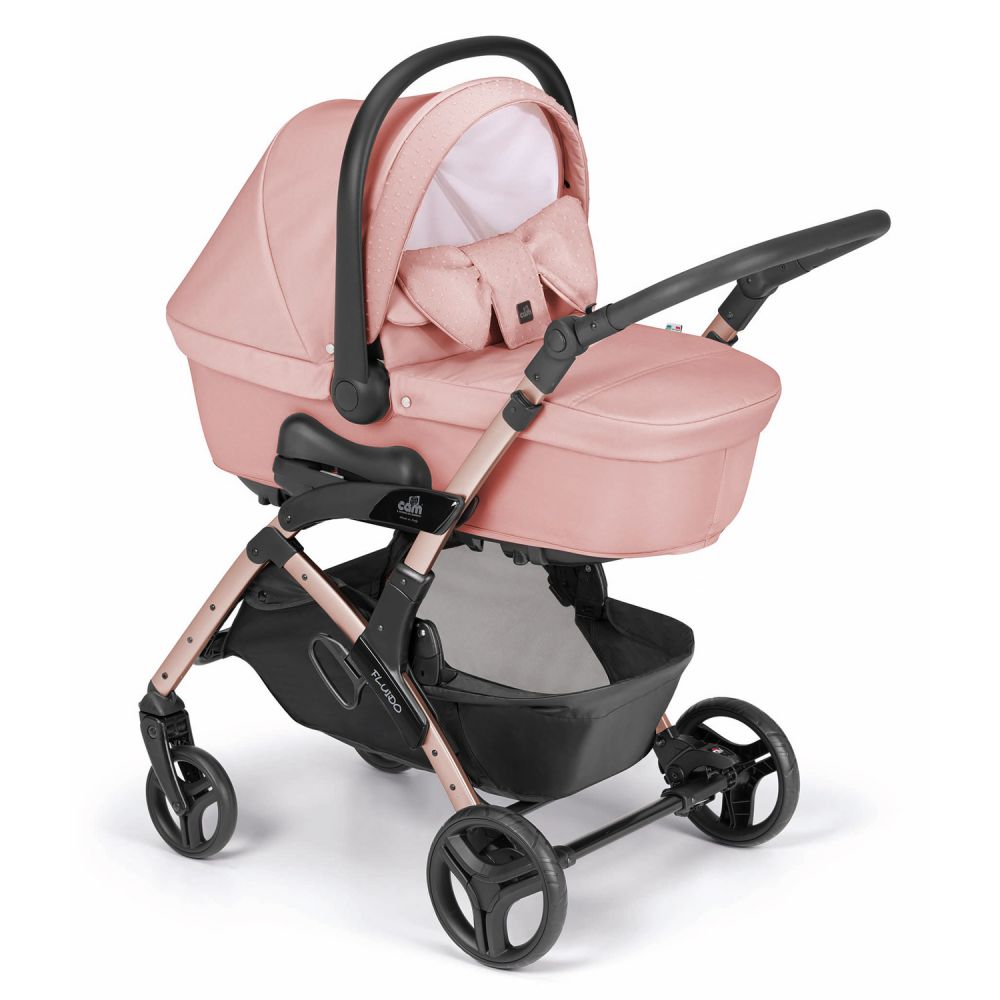 Trojkombinace kočárku Fluido Easy od italské značky CAM vám usnadní cestování s dítětem. Nejen moderní design prošívaného barevného setu s podvozkem, ale i množství vychytaných funkcí – to vše vám na cestách poskytne překvapivou lehkost a potřebné pohodlí. Vaše jedinečné rodičovské období si tak opravdu užijete. Cam Fluido Easy je utralehký kombinovaný kočárek, který, díky hliníkovému rámu, váží pouhých 5,2 kg. Má nastavitelnou rukojeť a jeho přední kolečka jsou gumová s možností aretace. Kočárku nechybí ani měkké odpružení. Tím je zajištěna pohodlná jízda, a to jak pro maminku, tak pro dítě. Hluboká korba vašemu miminku zajistí bezpečné, komfortní prostředí Hluboká korba kočárku Fluido Easy je vyrobena z odolného plastu a je dostatečně prostorná. Díky měkké matraci a funkci polohování hlavičky budou mít ti nejmenší (do 10 kg) dostatek pohodlí. Korbička je dále vybavena madlem pro přenášení a houpací funkcí. Z korbičky si tak snadno vytvoříte kolébku, ve které děťátko krásně uspíte. Další výhodou kočárku je větrání na spodní straně korby, které se zvláště v horkých dnech postará o lepší cirkulaci vzduchu. Přitom stříška se sklápěcí sluneční clonou na zadní straně disponuje odnímatelným dílem a síťkou na další odvětrávání. Děťátko tak bude mít v kočárku příjemné prostředí i v létě. Naopak, v chladných měsících ho dobře ochrání stříška spolu s nánožníkem s vysokým zastíněním. Vnitřek korbičky lze dobře udržovat v čistotě. Je vyroben ze 100% bavlny a lze ho vyjmout a vyprat. Vnitřní rozměr a hmotnost korby:• (D × Š): 80 × 37,5 cm, hmotnost 4,6 kg Sporťák = ten správný parťák na výlety a poznávání okolí Sportovní nástavba ke kočárku Fluido Easy je určena dětem od 4 do 36 měsíců. Její součástí je 5bodový bezpečnostní pás a odnímatelné bezpečnostní madlo. O pohodlí dítěte se pak postará polohování zádové opěrky a opěrky na nožičky. Sluneční stříška kočárku Fluido Easy je navíc vybavena průhledným oknem, díky kterému vidíte na dítě, i když máte sportovní sezení umístěné po směru jízdy. Kromě stříšky je součástí balení také prostorný nákupní koš, nánožník a přebalovací taška. Kočárek se skládá jednoduše spolu s podvozkem a po vyklopení stojánku samostatně stojí. Potahy kočárku jsou vyrobeny z prodyšného měkkého materiálu a lze je sejmout a vyprat. Autosedačka ochrání nejen před nárazy, ale i před sluncem Autosedačka má ergonomický tvar a ochranu proti bočnímu nárazu. Dítě se do ní poutá pomocí 3bodových bezpečnostních pásů. Přičemž součástí autosedačky je také novorozenecká vložka, která je tvarovaná tak, aby v lehu nedocházelo k nadměrnému tlaku na dýchací cesty miminka. Autosedačka má navíc natahovací stříšku, která dítě ochrání před prudkým sluncem.