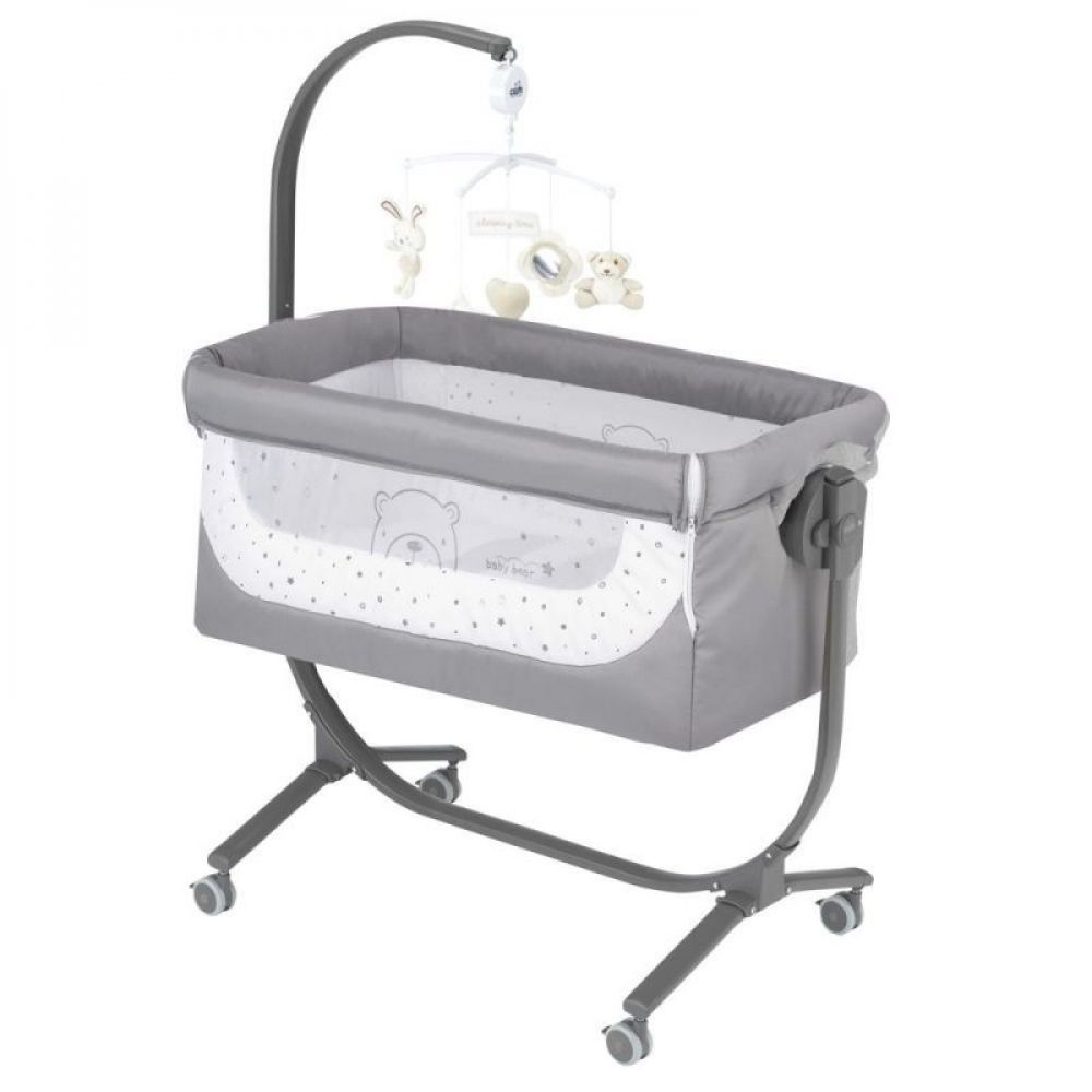 Díky odnímatelné bočnici a možnosti posunout celé lůžko na rámu do strany (až 16cm)ji lze snadno umístit těsně vedle vaší postele. Pro snadnou manipulaci po bytě je vybavena kolečky. Cullami postýlku lze nastavit do různých výšek i polohovat. Je ukotvena v kovovém rámu, postýlku zle zajistit napevno nebo používat jako kolébku.
