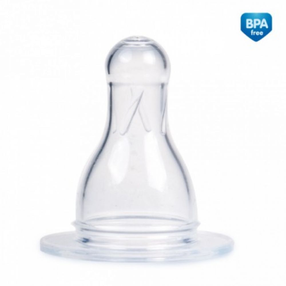 Silikonový kulatý dudlík je vhodný na všechny typy standardních láhví. Dokonale se odvzdušňuje a „nelepí“ se k sobě v průběhu krmení. Je vyroben z kvalitního silikonu, který se zcela bez chuti a bez zápachu a nemění chuť podávaného pokrmu. Dodává se v šesti velikostech průtoku. Při výběru dudlíku berte v úvahu také věk dítěte, jeho chuť k jídlu a druh podávaného pokrmu. V balení 2 kusy.Návod k použití:Před prvním použitím dudlík z hygienických důvodů sterilizujte ve vařící vodě po dobu asi 5 minut. Před každým dalším použitím umyjte dudlík šetrným mycím prostředkem v horké vodě, důkladně vypláchněte a přelijte vařící vodou. Nepoužívejte žádné antibakteriální přípravky! Nenechávejte dudlík na přímém slunci, v blízkosti tepelného zdroje nebo ve sterilizačních prostředcích déle než je doporučováno, můžete způsobit oslabení dudlíku. Šroubovací víčko nedotahujte příliš silně, protože pak se dudlík nemůže správně odvzdušňovat. Tvrdá voda, ovocné šťávy nebo čaje mohou způsobit usazeniny nebo zabarvení dudlíku, což nijak nemění jeho vlastnosti. Neděrujte a nezvětšujte otvory v dudlíku – můžete způsobit jeho zničení. Z hygienických a bezpečnostních důvodů doporučujeme vyměnit dudlík max. po 2 měsících. Důležité! Pro bezpečnost a zdraví vašeho dítěte! Před každým použitím zkontrolujte kvalitu dudlíku. Věnujte dudlíku zvýšenou pozornost poté, co dítěti vyrostou první zoubky. Vyzkoušejte kvalitu dudlíku důkladným natažením všemi směry. Při prvních známkách poškození dudlík ihned vyhoďte a již dále nepoužívejte. Používejte pouze pod dohledem dospělé osoby. Nikdy nepoužívejte dudlík jako šidítko. Dlouhodobé i prodloužené sání tekutin může způsobit vady zubní skloviny dítěte. Vždy zkontrolujte teplotu podávaného pokrmu. Upozornění! Výrobek není hračka. Uchovávejte mimo dosah dítěte. Dudlík odpovídá požadavkům:Nařízení Evropského parlamentu a rady 1935/2004/EC – obecné požadavky na materiály a předměty určené pro styk s potravinami,EN 14350 - 1 Výrobky pro péči o dítě - Vybavení pro pití - Část 1: Všeobecné a mechanické požadavky a zkoušky,EN 14350 – 2 Výrobky pro péči o dítě - Vybavení pro pití - Část 2: Chemické požadavky a zkoušky.