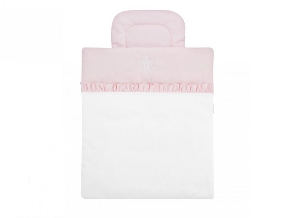 Rozkošné mini povlečení do mojžíšova košíku. Ideální také pro kolébku a proutěný košík. Povlečení je vyrobeno z bílé saténové bavlny a zdobeno bílým trojrozměrným firemním znakem a zakončeno krásným volánkem. Ložní prádlo má výplň.