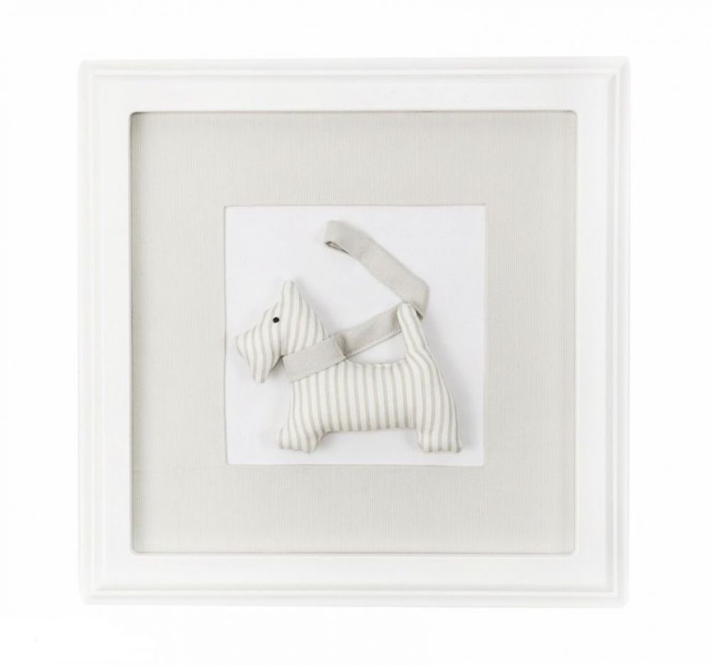Nejmilovanější dětský mazlíček Pejsek s vodítkem v bílých a béžových barvách. Vnitřní část obrázku je vyrobena z měkkého textilu. Rozkošný textilní trojrozměrný dětský obraz s dřevěným rámem rozzáří každý dětský pokoj. Dokoupením ozdobné mašle bude obraz na stěně vypadat jako z pohádky.