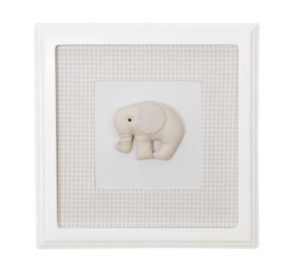 Rozkošný textilní obraz Slon pro štěstí v béžové barvě. Trojrozměrný dětský obraz rozzáří každý dětský pokoj. Dokoupením ozdobné mašle bude obraz na stěně vypadat jako z pohádky. Vnitřní část obrázku je vyrobena z měkkého textilu.