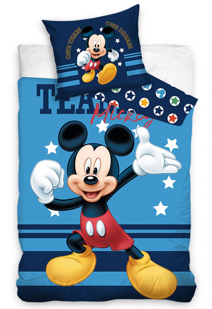 Na lícní straně povlaku přikrývky je usměvavý Mickey Mouse, který zve všechny děti do svého týmu
