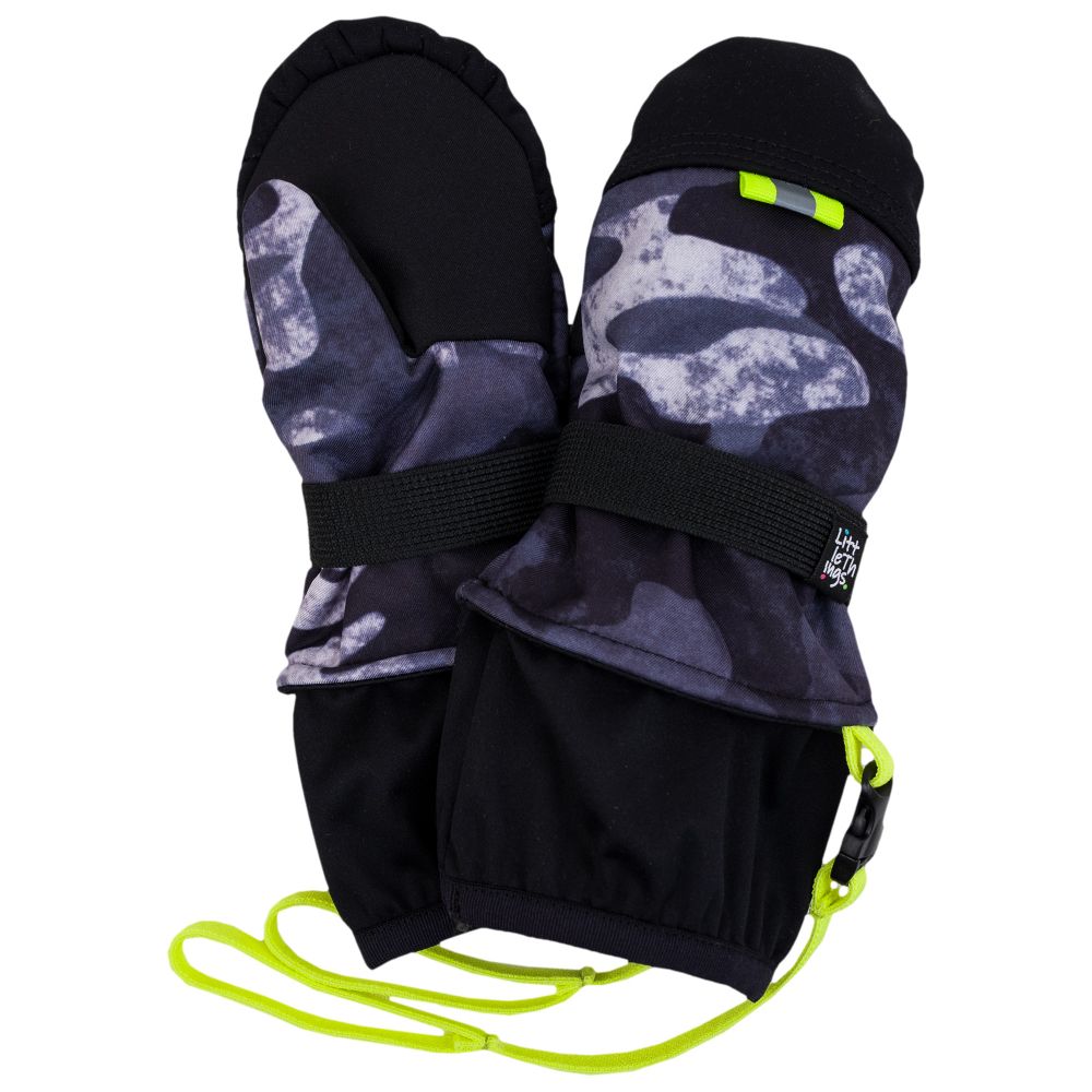Recenze černé maskáčové zimní softshellové rukavice - věk 6+