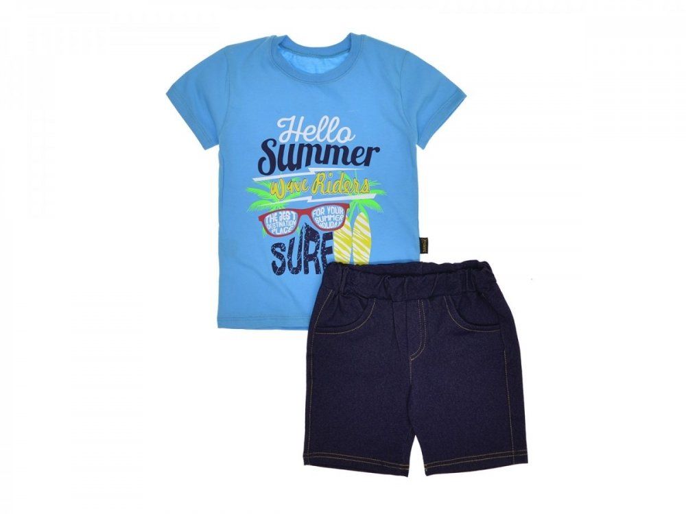 Dětsky set SUMMER je skvělou volbou do horkých letních dní. Součástí soupravičky je tričko a kraťasy. Roztomilé chlapecké tričko s krátkými rukávy, kulatým výstřihem, je vyrobené z příjemného materiálu a bude vašim dětem pohodlné po celou dobu nošení. Kraťasy jsou vyrobeny z lehkého a velmi příjemného materiálu, pas neni moc pružný. Perfektní kousek pro elegantní nebo každodenní outfit.