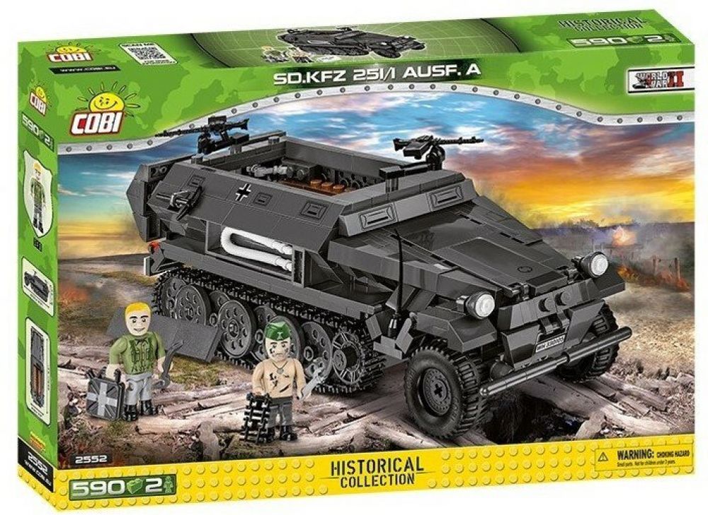 COBI - II WW Sd.Kfz 251/1 Ausf. A, 592 k, 2 f, Věková kategorie: 10+ Postavte si model Sd.Kfz 251/1 Ausf. byl polopásové transportér, který se používal jako střední obrněné bojové vozidlo pěchoty v pěších mechanizovaných praporech a motorizovaných ženijních rotách německého Wehrmachtu. Ve verzi A byl vyzbrojen dvěma kulomety. Balení obsahuje 590 kostek a 2 figurky.