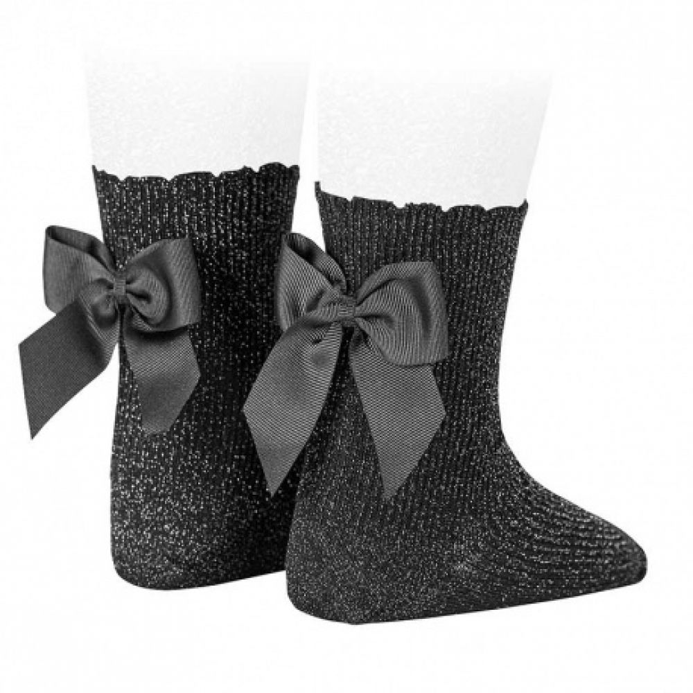 Jemné žebrované krátké dětské ponožky s detailem krásné velké mašle na zadní straně. Tyto dokonalé třpytivé ponožky pro děti krásně vyniknou nejenom s dívčí sukní nebo šaty ale také s dětskými tenisky.