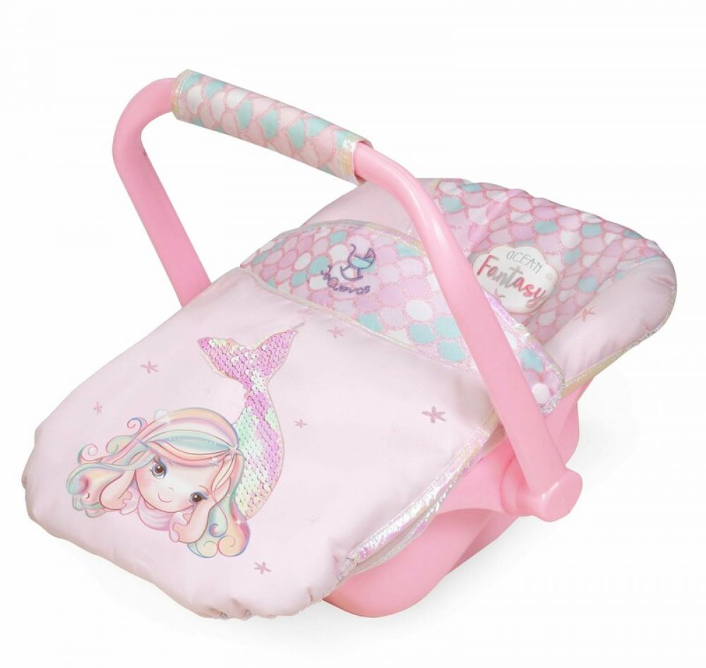 DeCuevas 51341 Autosedačka pro panenky s přikrývkou Ocean Fantasy 2021, z překrásné světle růžové kolekce s malou mořskou vílou, potěší jistě každou malou slečnu, která ráda cestuje se svou panenkou v autě. Autosedačka je vhodná pro panenky do velikosti cca 45 cm. Nádherný španělský design, precizní zpracování. Materiál: plast, textil. Balené v krabici v barvách kolekce. Doporučený věk od 3 let.
