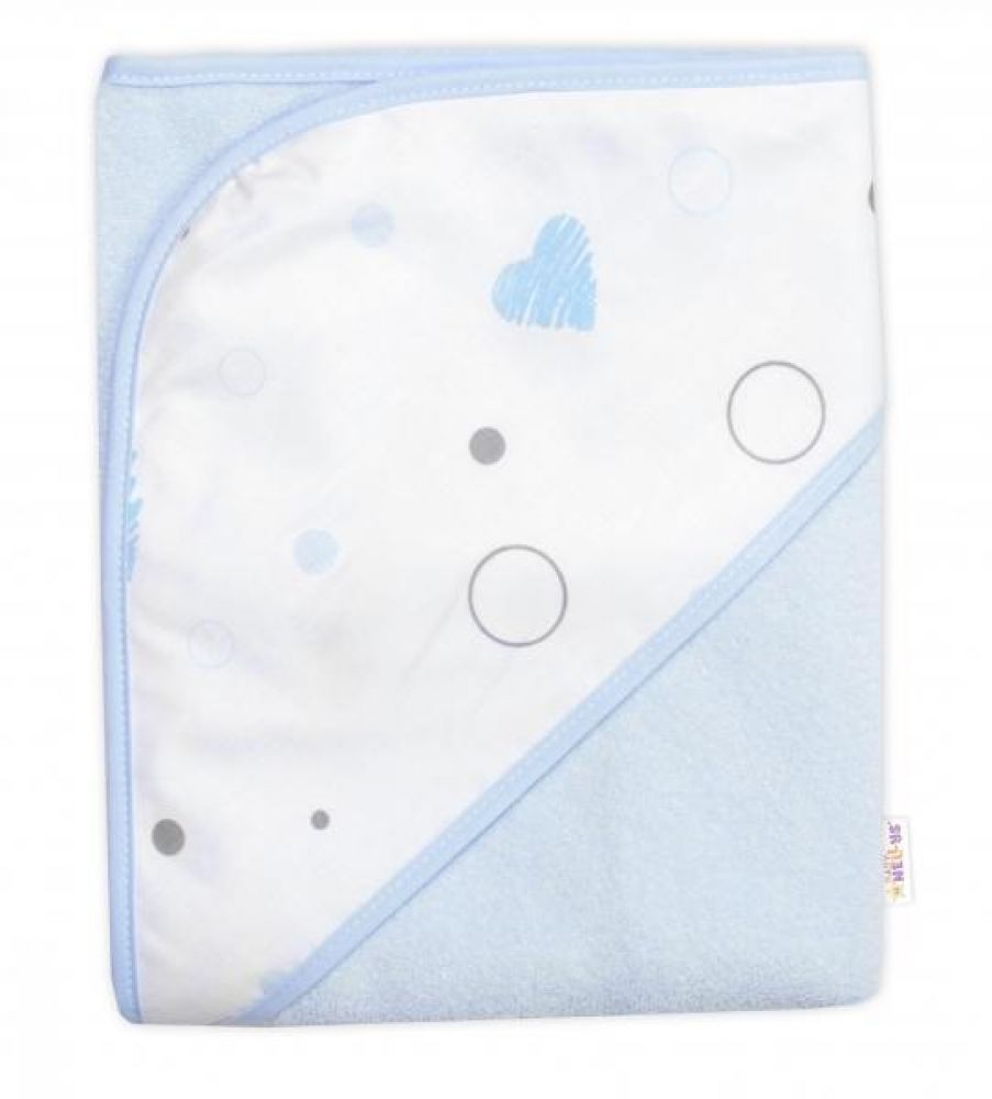 Dětská termoosuška s kapucí Baby Nellys, I love Boy, 100 x 100 cm, modrá