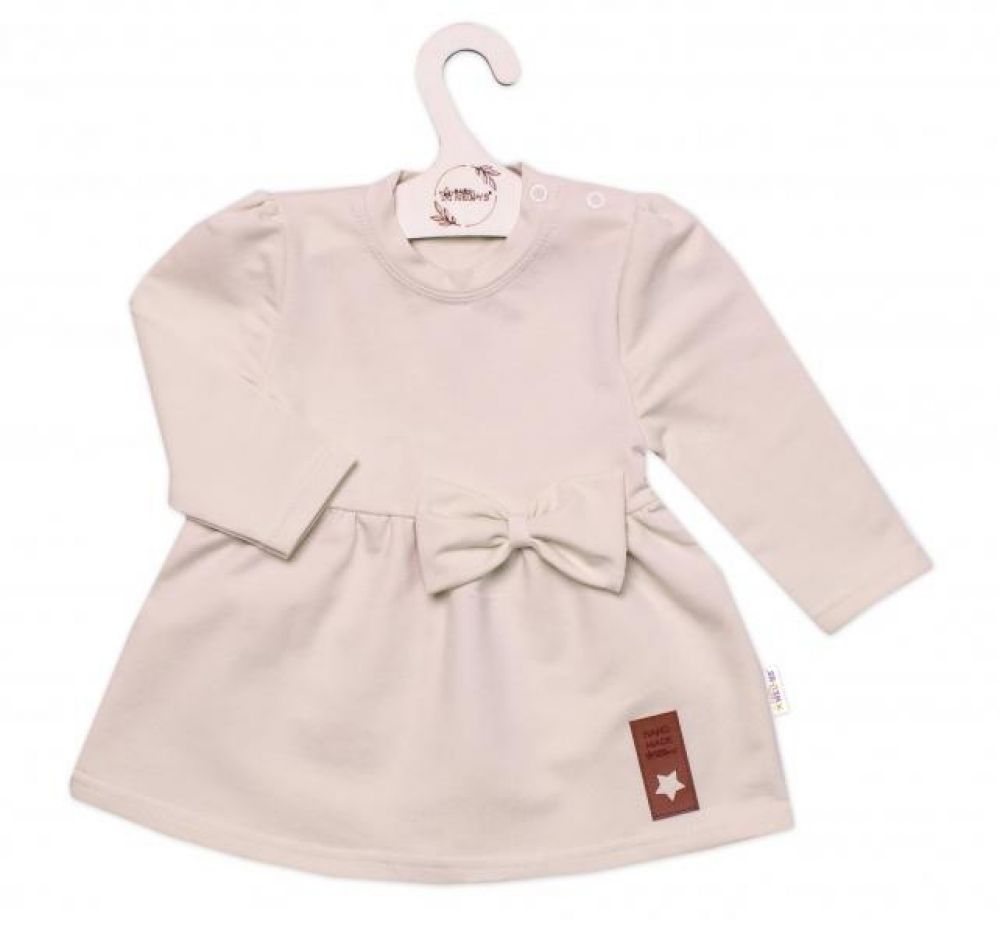 Dětské bavlněné šatičky s mašličkou Baby Nellys - béžové, vel. 80, 80 (9-12m)