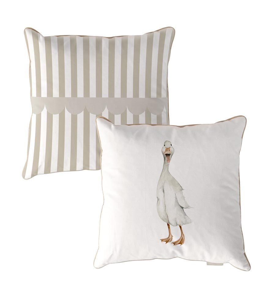 Potisk je vyroben eko barvivy. Polštář má kolem dokola béžový lem, rovněž z bavlny.