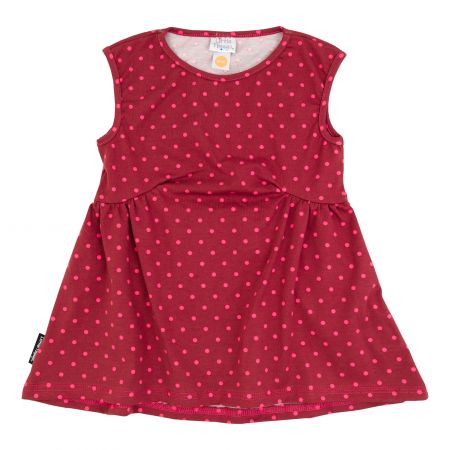Dívčí šatečky bez rukávku s lehce nabranou sukénkou. Vínová barva šatů s růžovým puntíkem a vyladěný střih jsou zárukou toho, že holčičky dosáhnou maximální úrovně roztomilosti:) A pohodlí přitom zůstává!